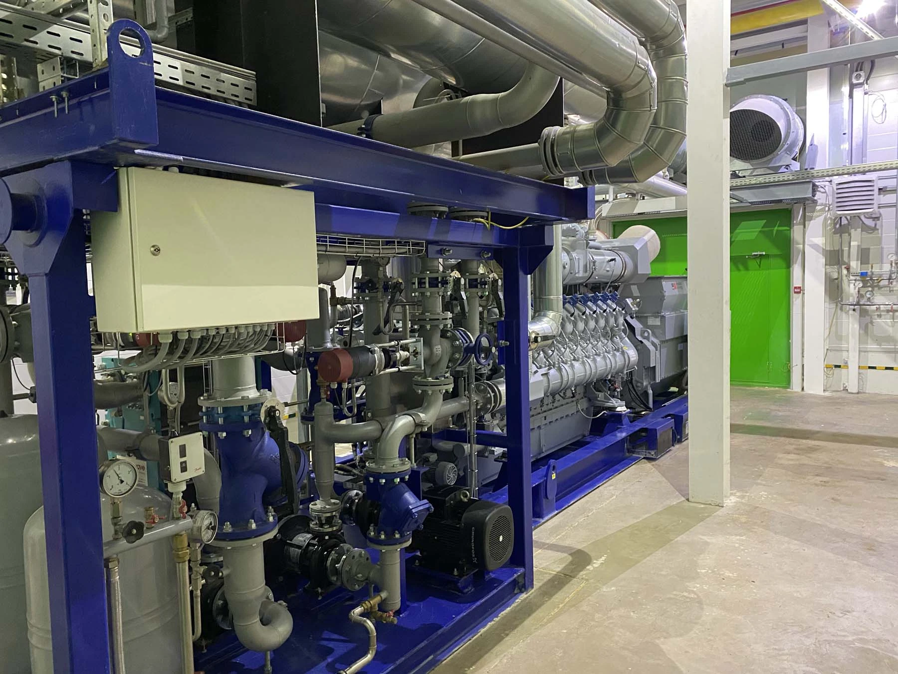 Энергоцентр для нужд тепличного комплекса в Новгородской области, ООО Трубичино. Установленная электрическая мощность 5 МВт на базе 2-х газопоршневых агрегатов MTU 20V4000L64 единичной электрической мощностью 2535 кВт, каждый. Оборудование будет работать в островной изолированной сети для целей искусственной досветки. Capital Energy применяет собственное know-how: интеллектуальную систему управления досветкой и потоками энергии генераторов для надежного и бесперебойного энергоснабжения систем досвечивания теплиц в изолированных системах.