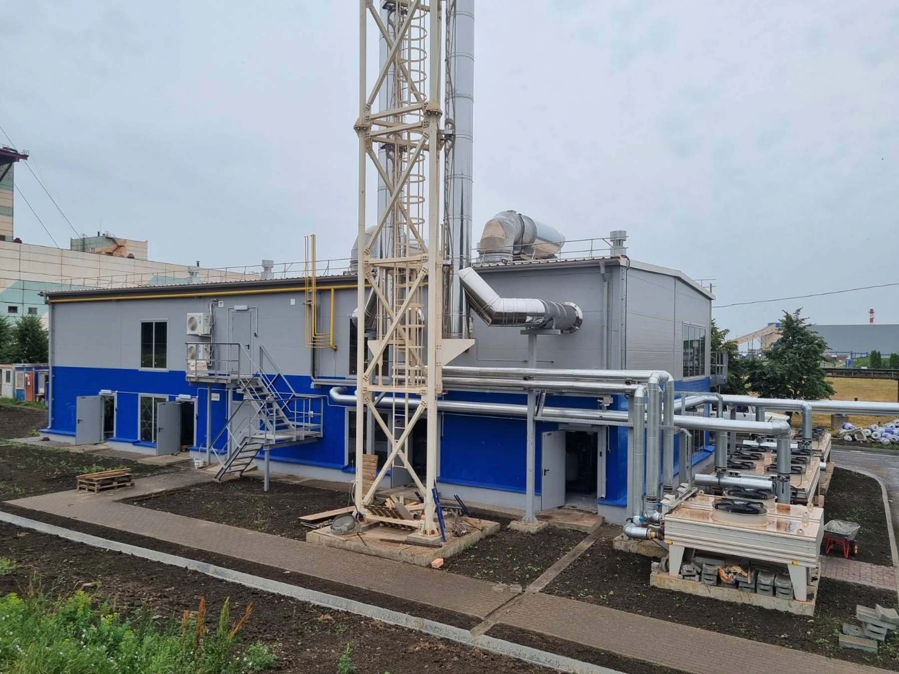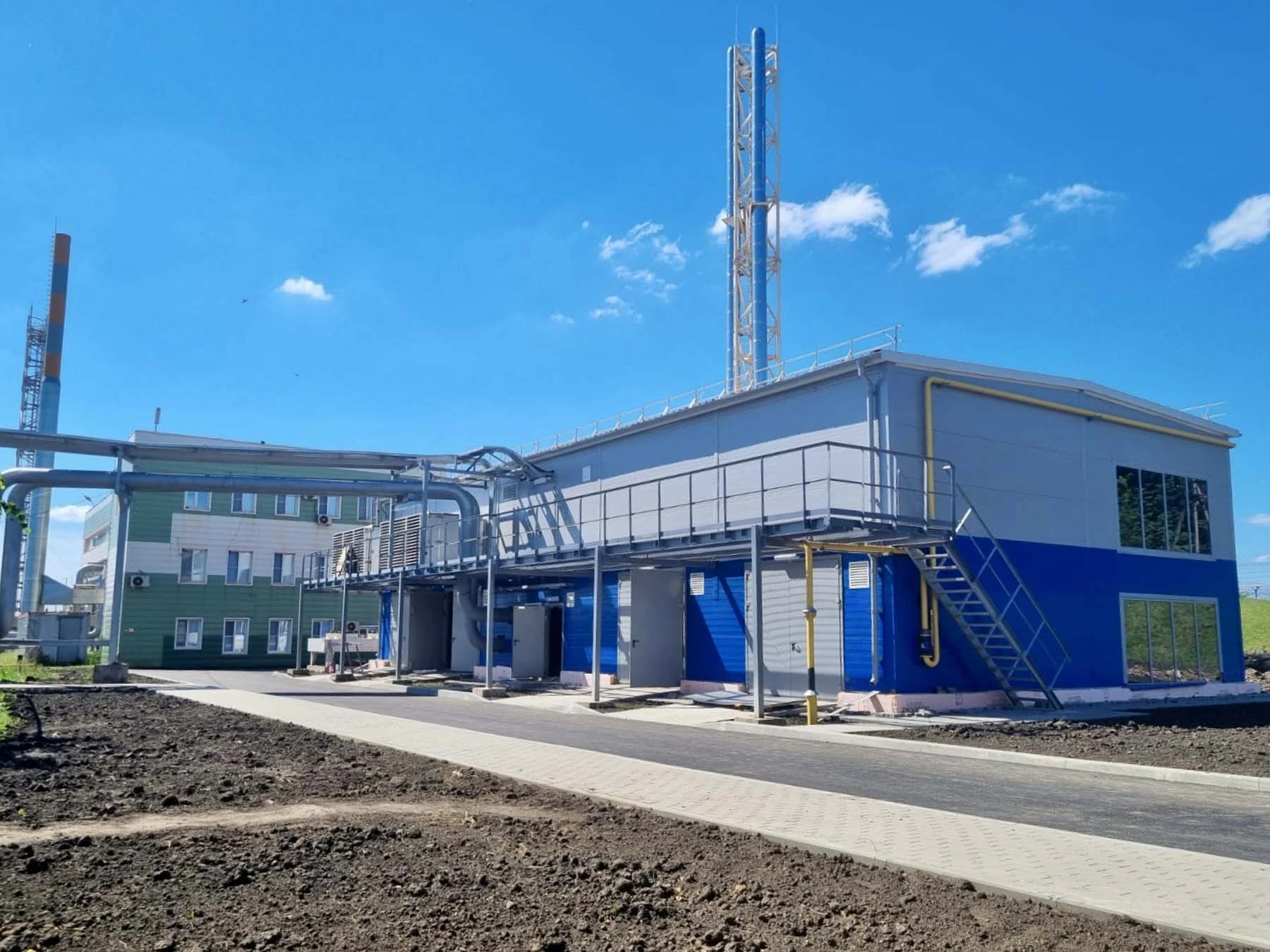 Энергетический комплекс для обеспечения производственных нагрузок предприятия в электрической и тепловой энергии на базе 4-х газопоршневых установок производства MTU Onsite Energy GmbH в исполнении IEC Energy Kit с водогрейной системой утилизации тепла. Суммарная установленная электрическая мощность энергоцентра – 10 МВт. Строительство объекта предполагается в 2 очереди.