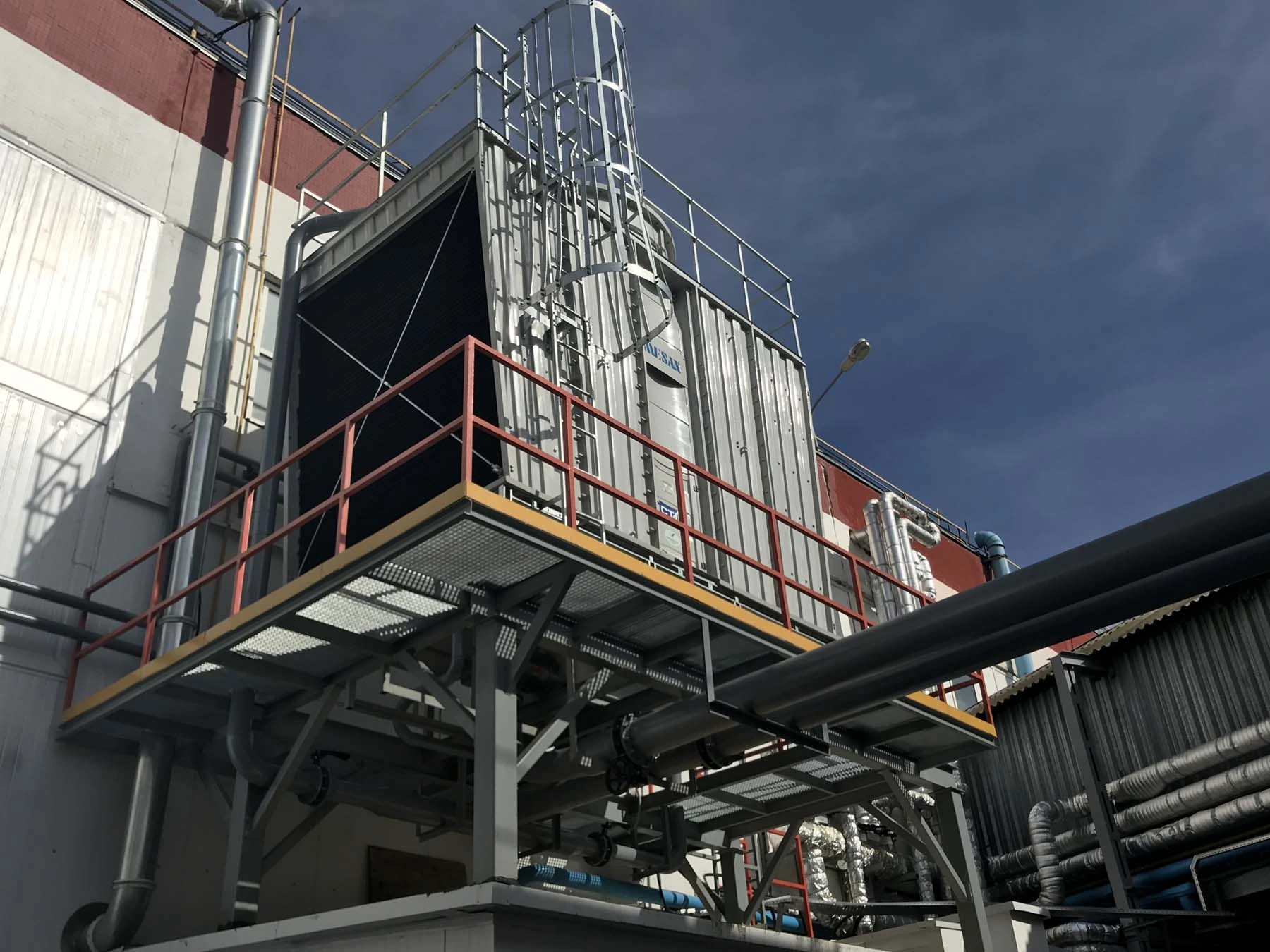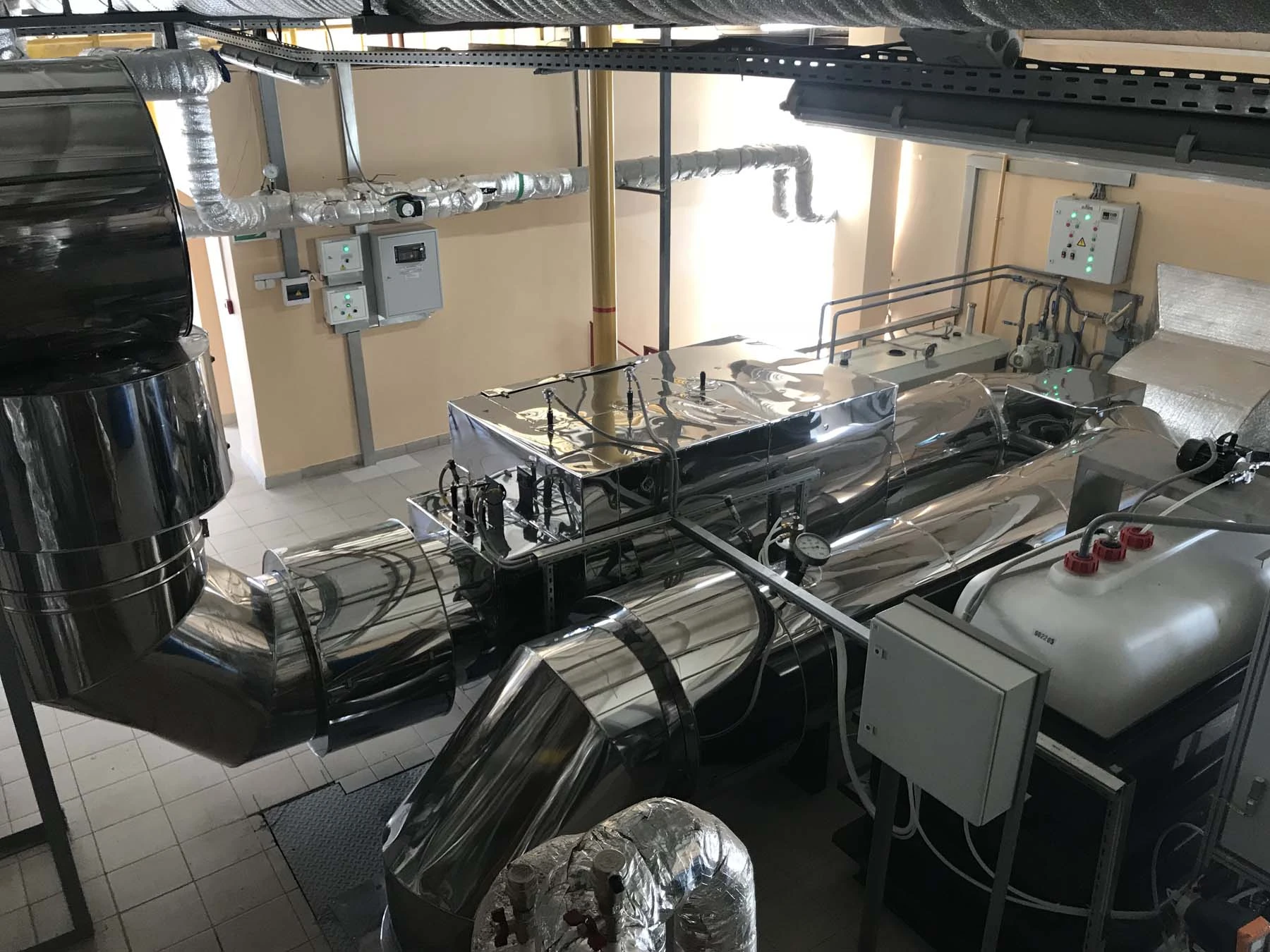 Энергоцентр на базе 2-х газопоршневых агрегатов производства MTU Onsite Energy GmbH с паровым котлом-утилизатором производства Viessmann Industriekessel Mittenwalde GmbH и абсорбционной холодильной машиной BROAD Air Conditioning. Установленная электрическая мощность 3.1 МВт, суммарная паропроизводительность 1.7 тонн пара/час давлением 13 бар, холодильная мощность 0.45 МВт.